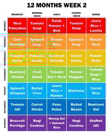 Meals like rice pancakes, palak paneer with roti, beetroot khichdi, and stuffed idli make Week 2 both exciting and nutritious.