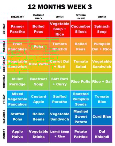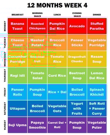 In the final week, dishes like banana toast, pumpkin dal rice, paneer sticks, and lemon dal rice ensure a variety of nutrients.